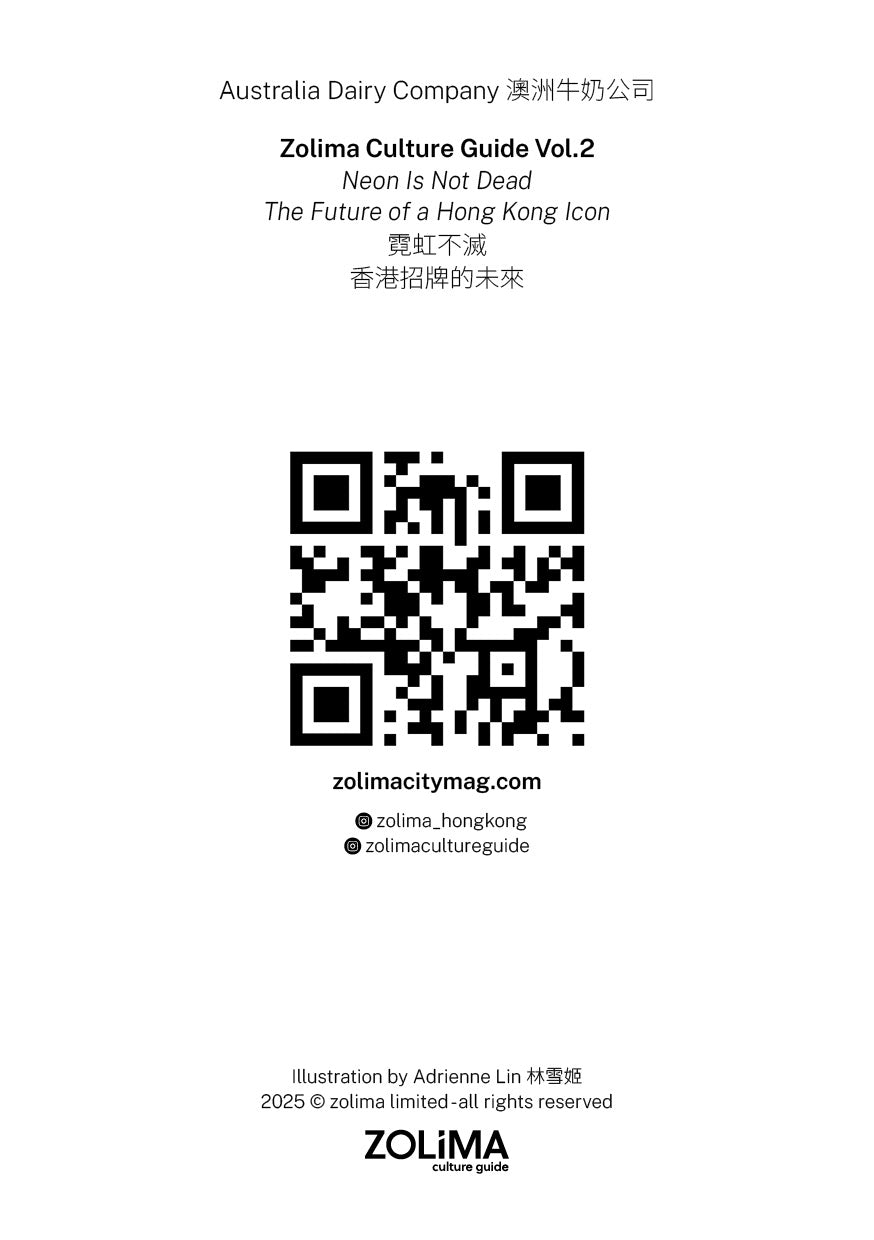 三張精美霓虹插畫卡,收錄了Zolima 為《霓虹不滅》獨家創作的插圖,展現了珍寶海鮮舫、澳洲牛奶公司和樂聲牌等標誌性霓虹燈招牌。這些招牌如今都已從香港街頭消失,插畫製作精美,可直接掛起展示。